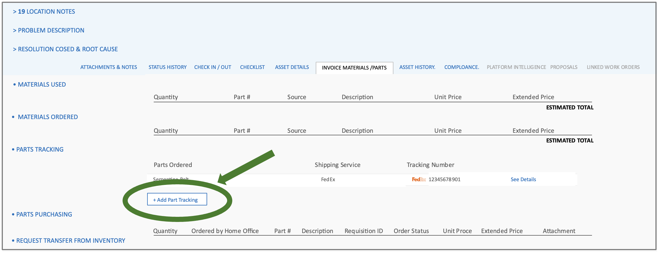 See the part order tracking option on the work order: