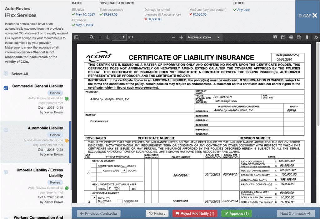 - New! Faster insurance reviews: Automate the process of reviewing all your provider insurance certificates, instead of doing it manually one-by-one, via Compliance Manager.
