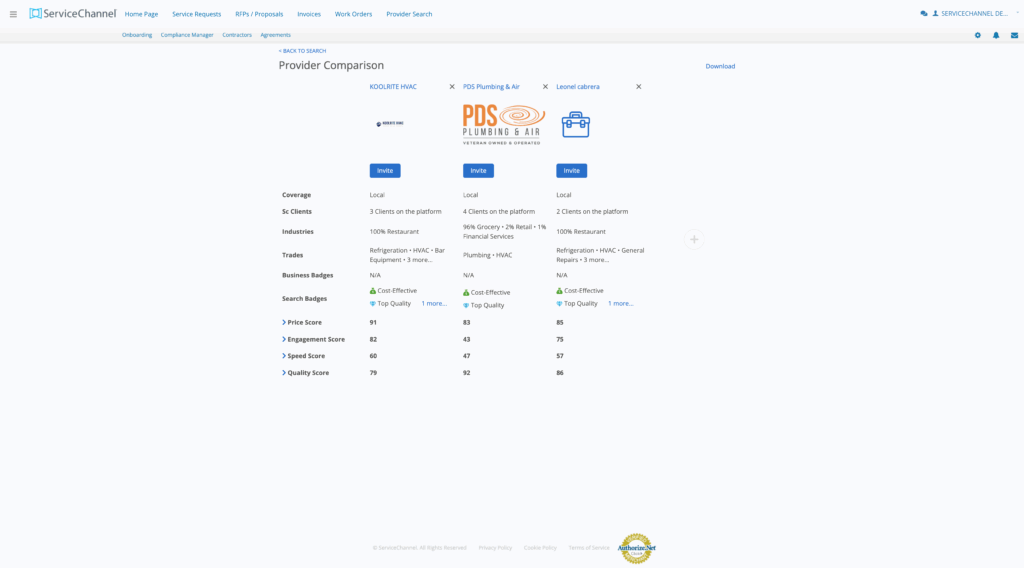 Log into ServiceChannel and click on the Scorecard tab at the top of any page to compare your providers now.