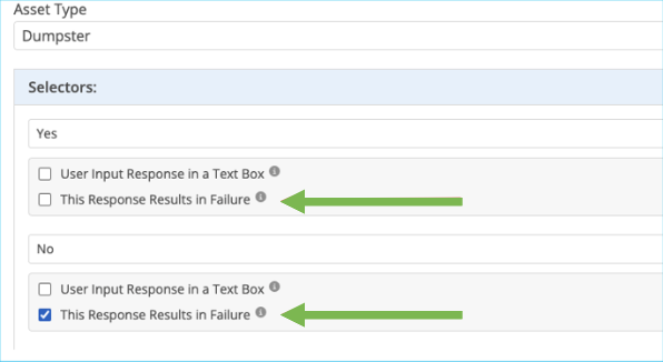 To get started, go to Admin > Checklists > Add/Edit to create or update checklists. Check the box for This Response Results in Failure next to each answer option that should trigger the Fail outcome, then click Save.