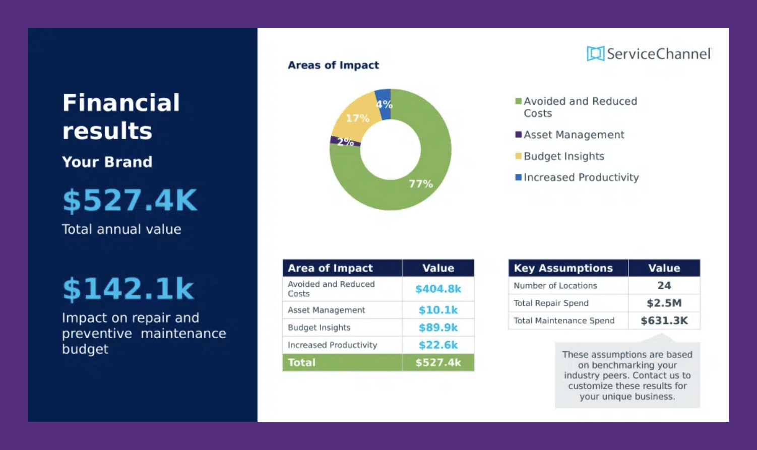 Get a customized estimate of cost savings and operational efficiencies with leading facility management software like ServiceChannel.