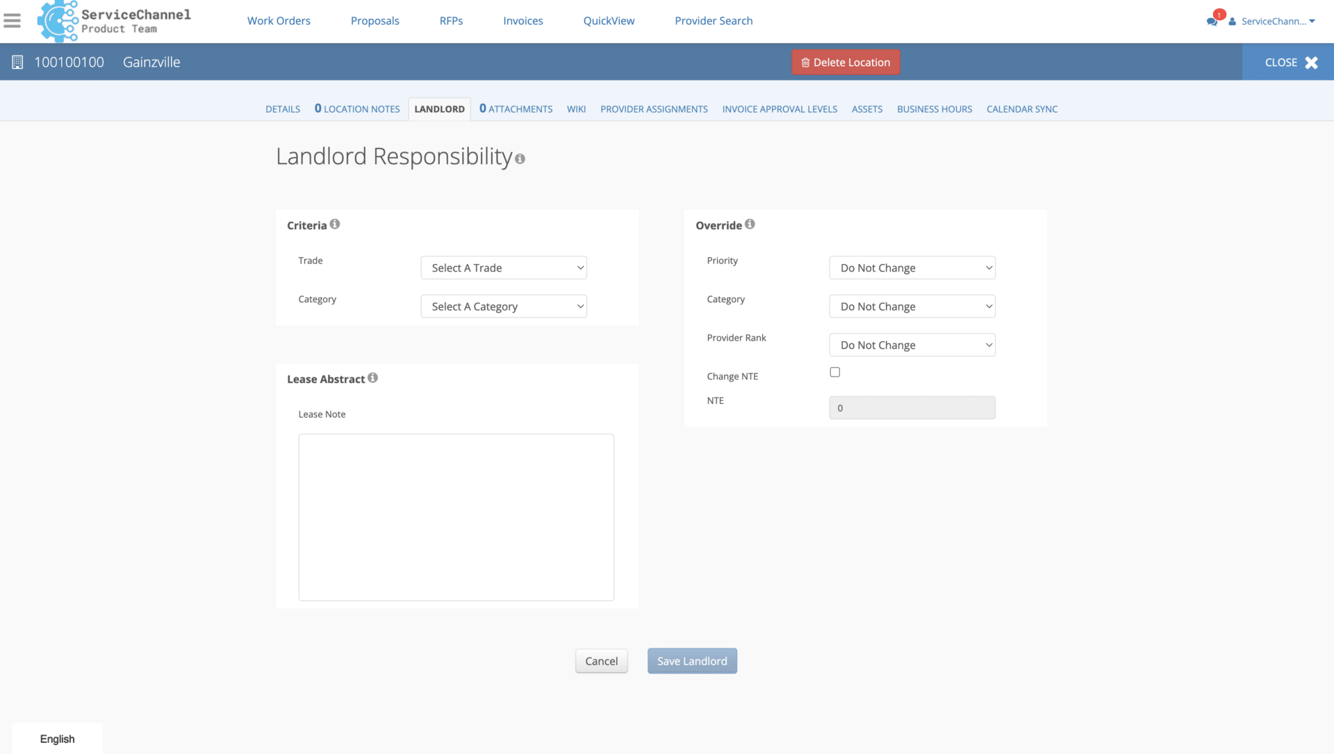Existing customers can start by setting up landlord responsibilities manually for some locations. Go to the Locations & Provider Assignments page > select a location > click on the new Landlord tab. To edit landlord responsibilities, users need the Location Admin role. To integrate with your lease management system, reach out to your Customer Success Manager or Support.