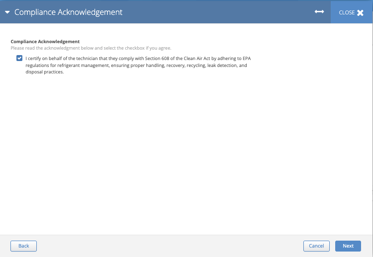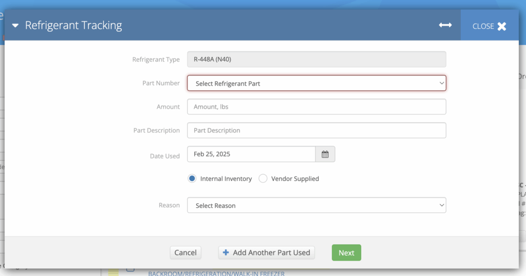 - New! Track refrigerants with smarter compliance, accuracy, and control. Accurately track cylinders, streamline leak records, and stay audit-ready with expanded acknowledgments and full verification history.
