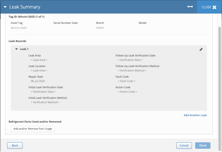 - Streamline leak records by eliminating extra follow-up. Providers can now enter refrigerant leak information without having to complete follow-up fields.