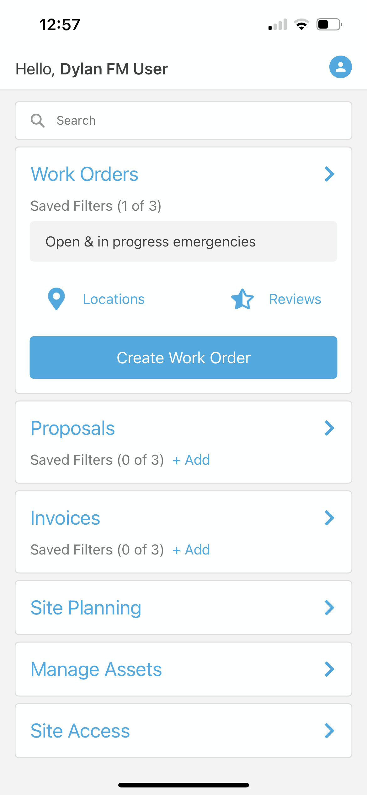 - Get quick access to your favorite tools. Jump straight to creating a work order and customize the homepage so your most frequently used items are on top.