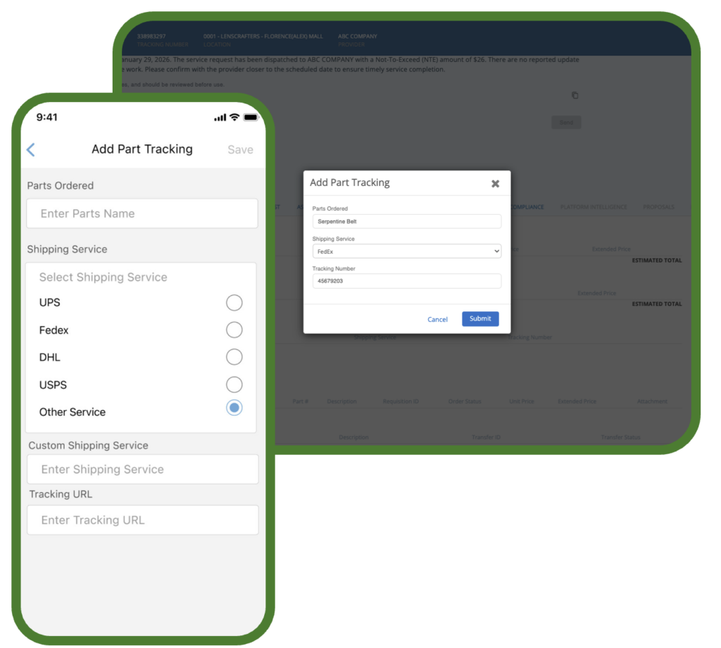- Reduce constant follow-up on work orders with parts on order by sharing tracking information.
